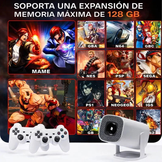 Proyector 2 en 1: Cine en Casa + Consola Retro (Incluye tarjeta 64 GB)